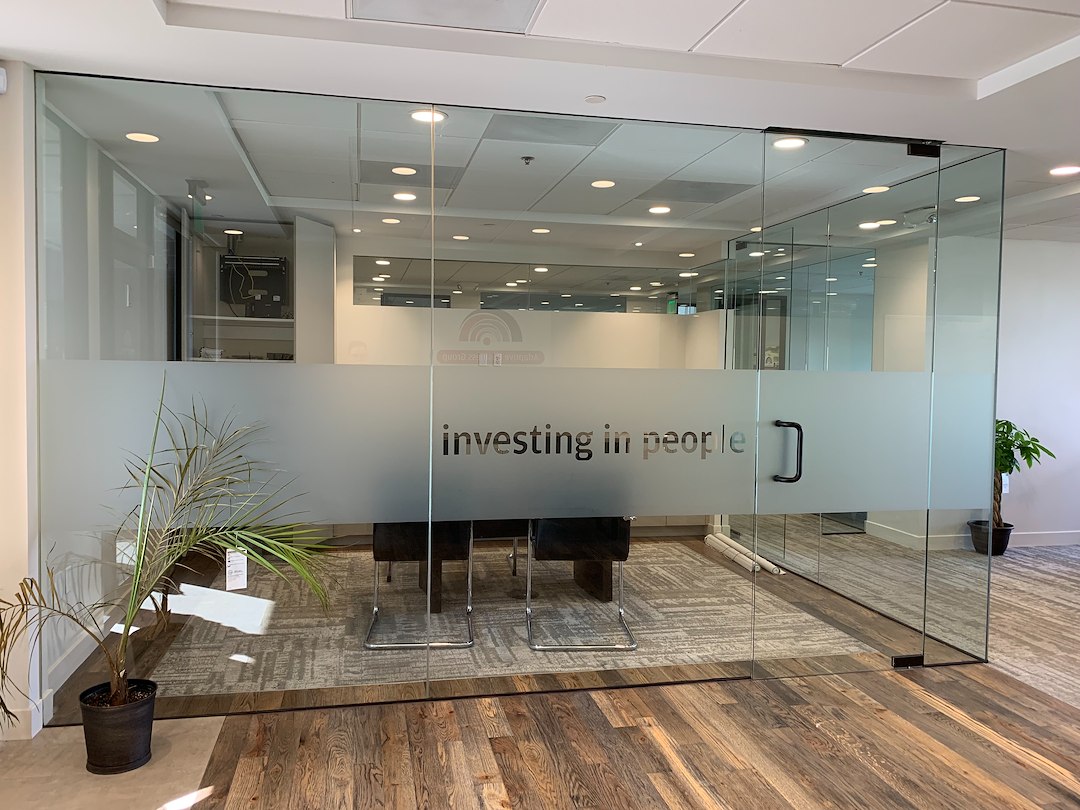 called us out to enhance the privacy and branding of their office space. Our team applied frosted decorative film to their conference room windows, providing an elegant and functional solution for privacy during meetings. In addition, we installed graphics on individual office windows to highlight their brand identity.